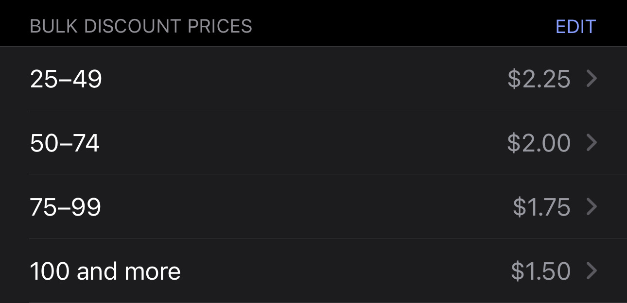BULK DISCOUNTS PRICE GUIDE: